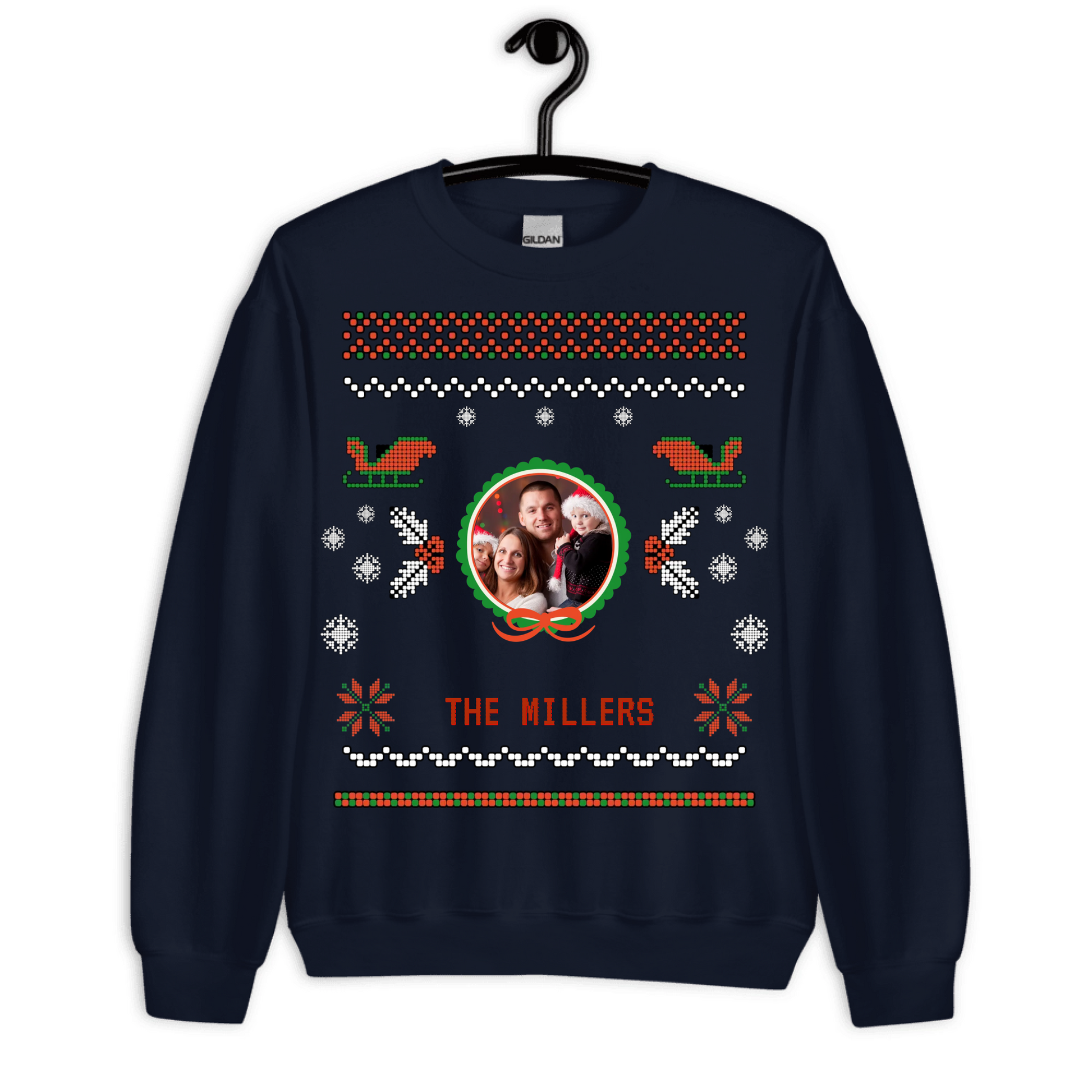 Capture the magic of the holidays with our Personalized Christmas Gift, featuring your own family photo and family name in a warm, festive design. Perfect for creating one-of-a-kind keepsakes or thoughtful gifts, this design lets you turn your favorite family moment into a cozy Christmas memory. Available as a T-shirt, sweatshirt, poster, mug, or tote bag.