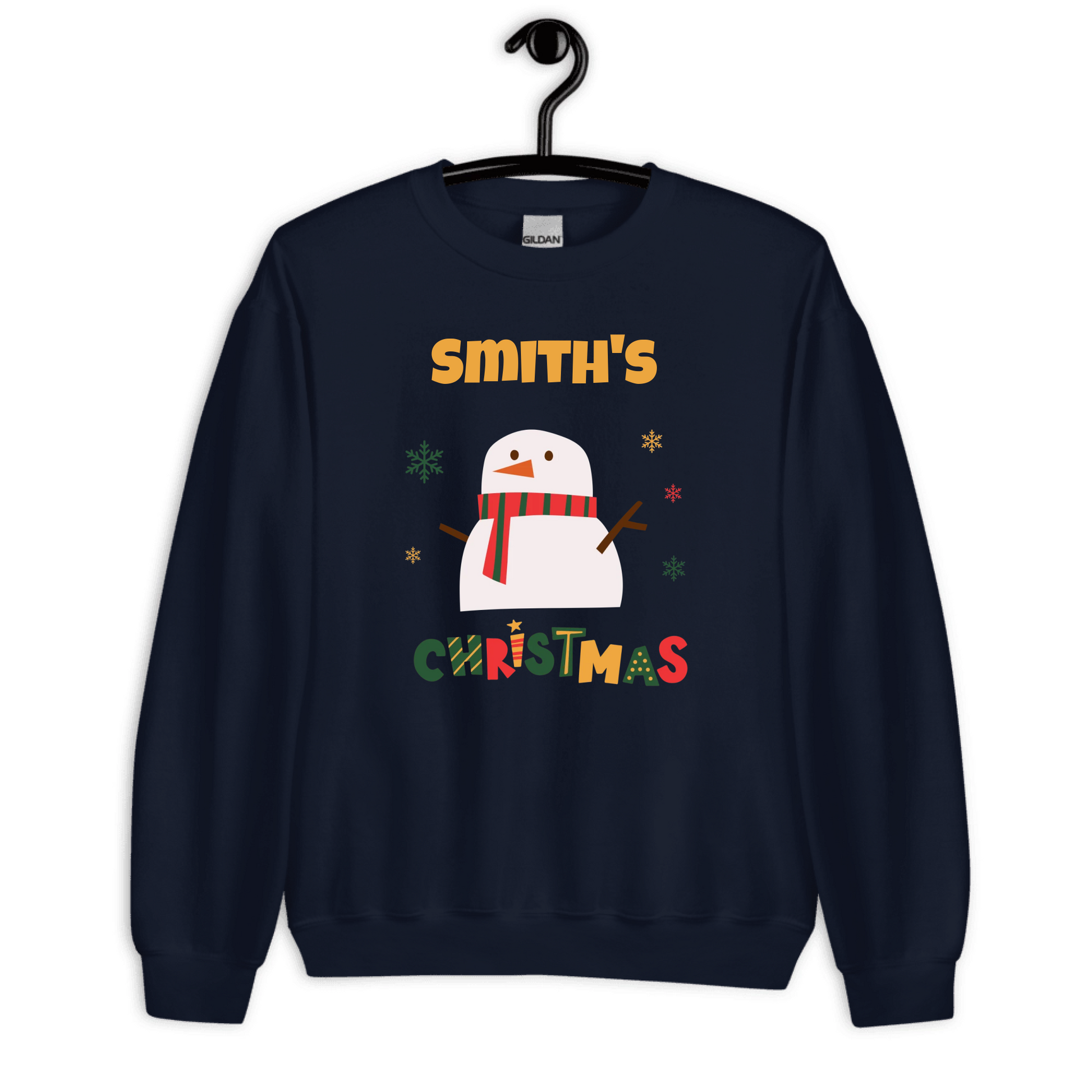 Personalized Matching Snowman Xmas Outfit — Custom Family Name on Sweatshirt, Kids Sweatshirt, T-Shirt & Mug